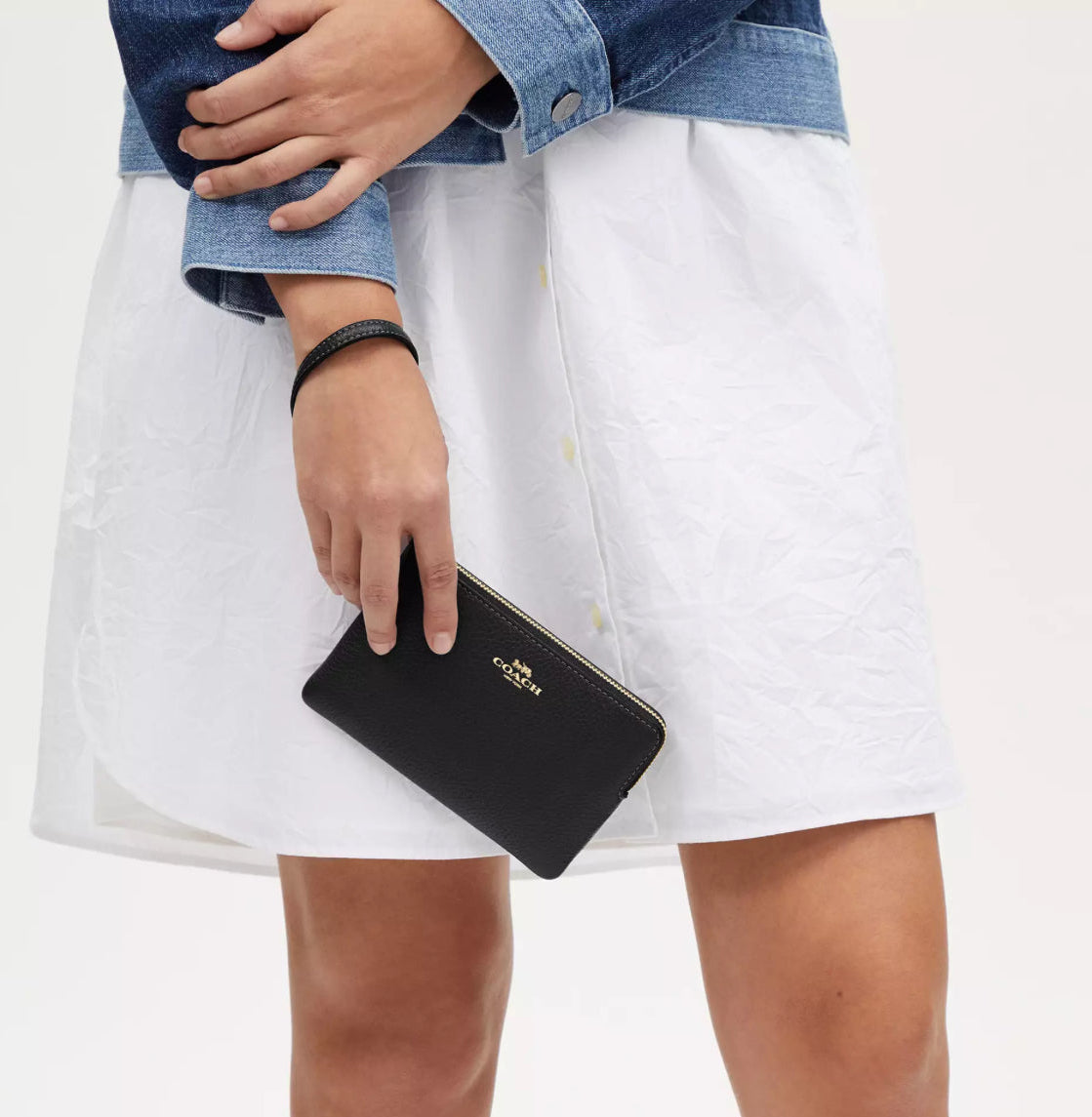 NWT Coach Leather Corner Zip Wristlet Wallet Gold/Black