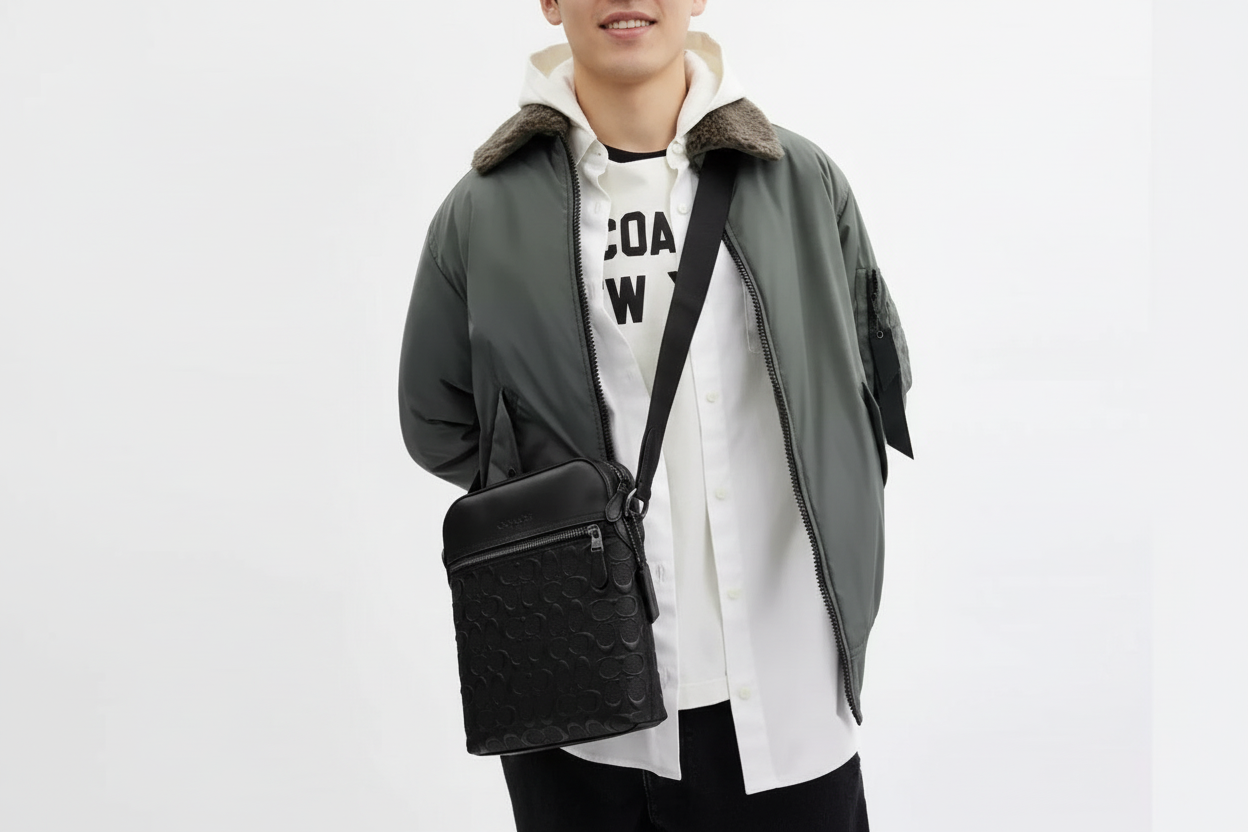 NWT Coach Men’s Houston Flight Bag In Signature Leather Black