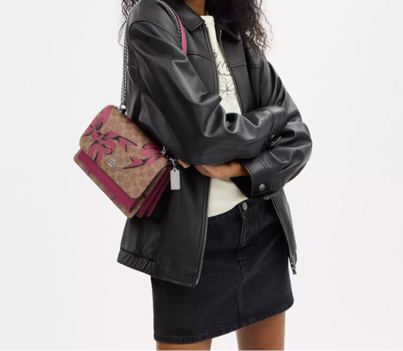 NWT Coach Klare Crossbody/Shoulder Bag In Signature Canvas With Pink Bow Print