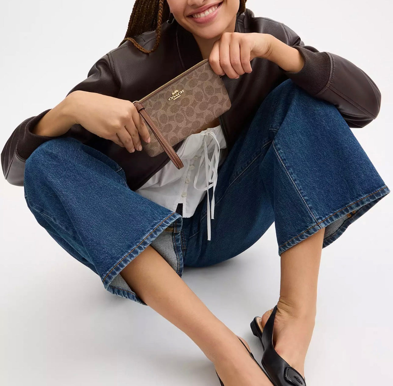 NWT Coach Large Corner zip Wristlet Wallet In Signature Canvas & Leather