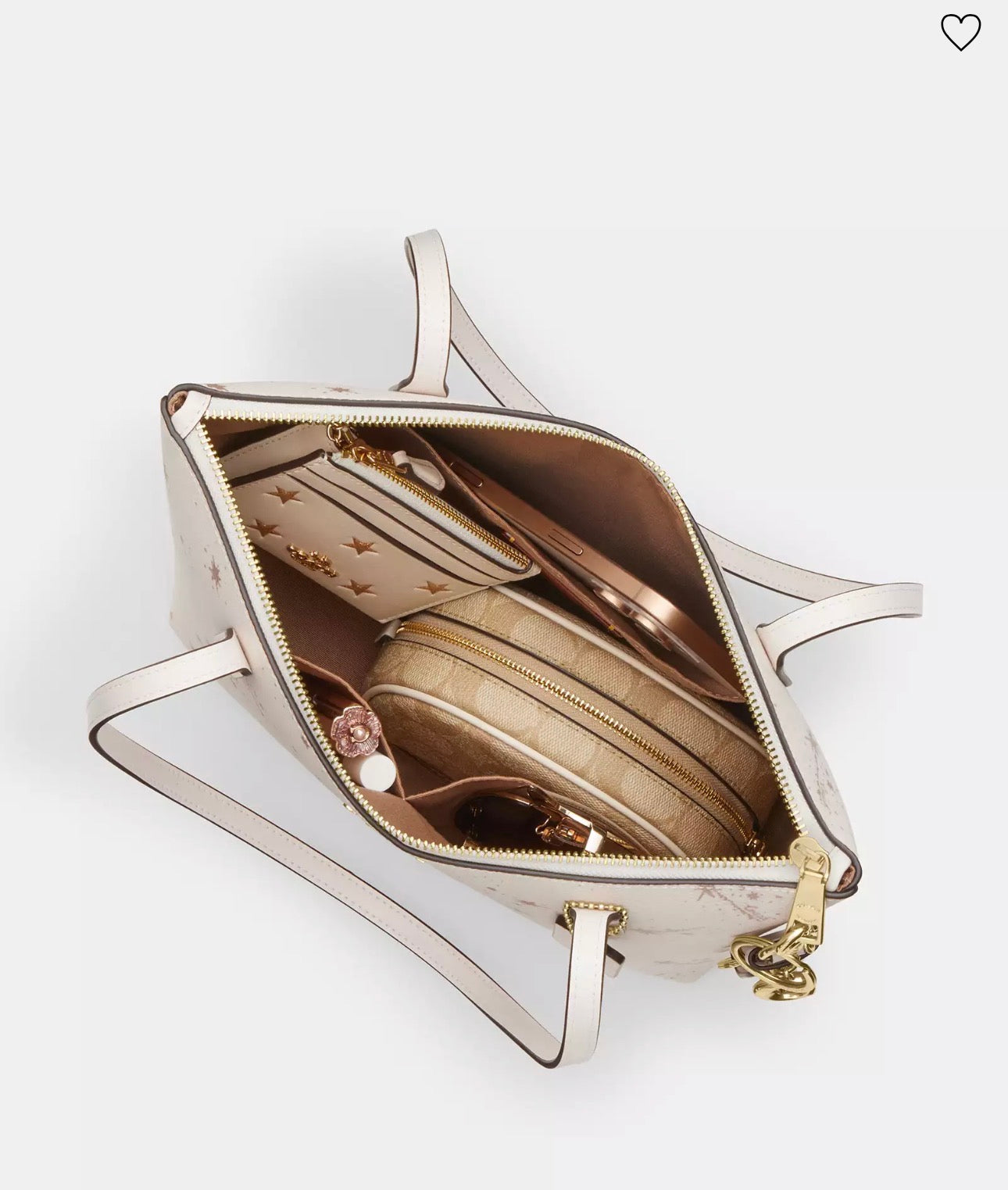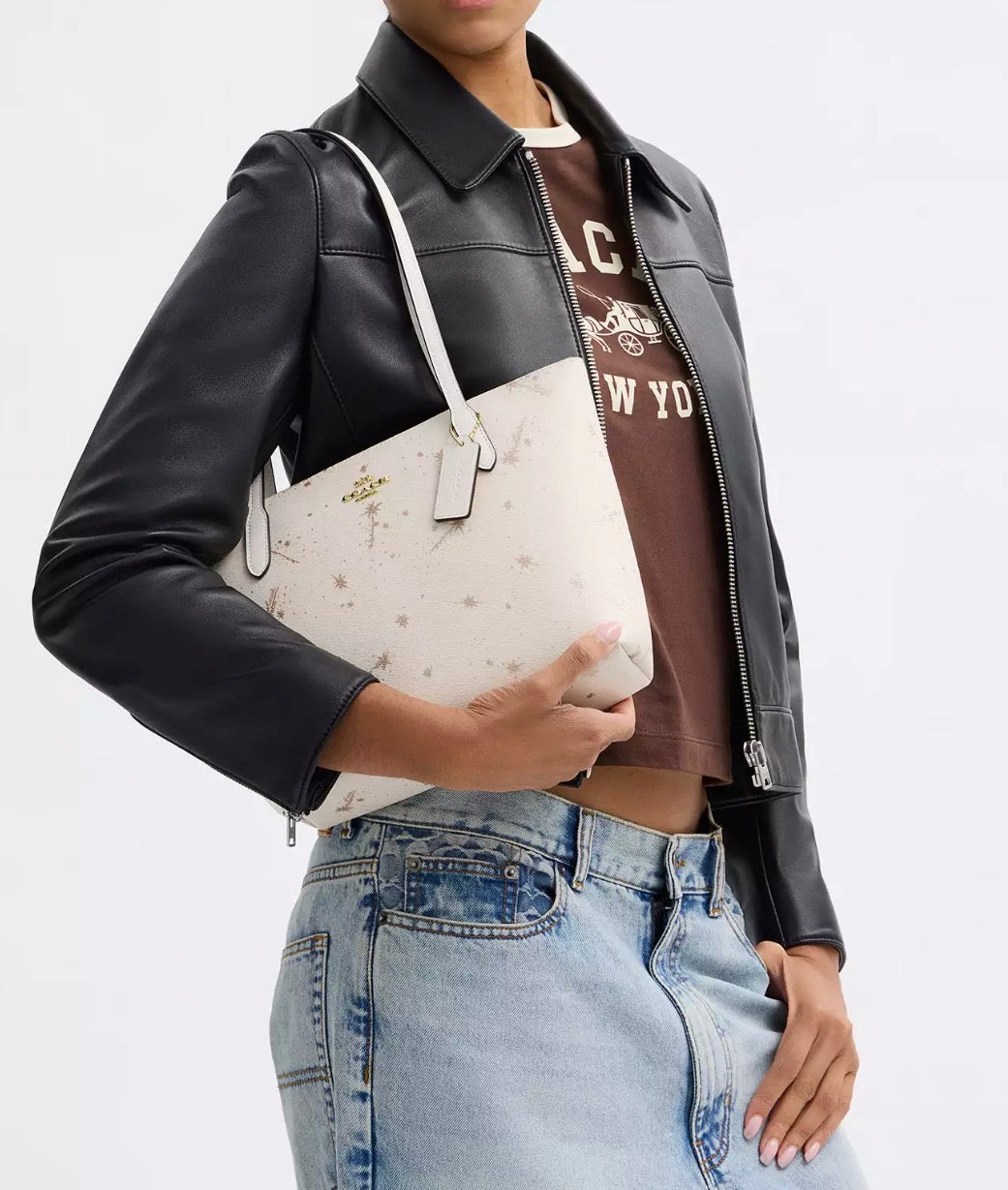 NWT Coach Fiona Zip Tote Bag with Star Print In Gold Chalk Multi