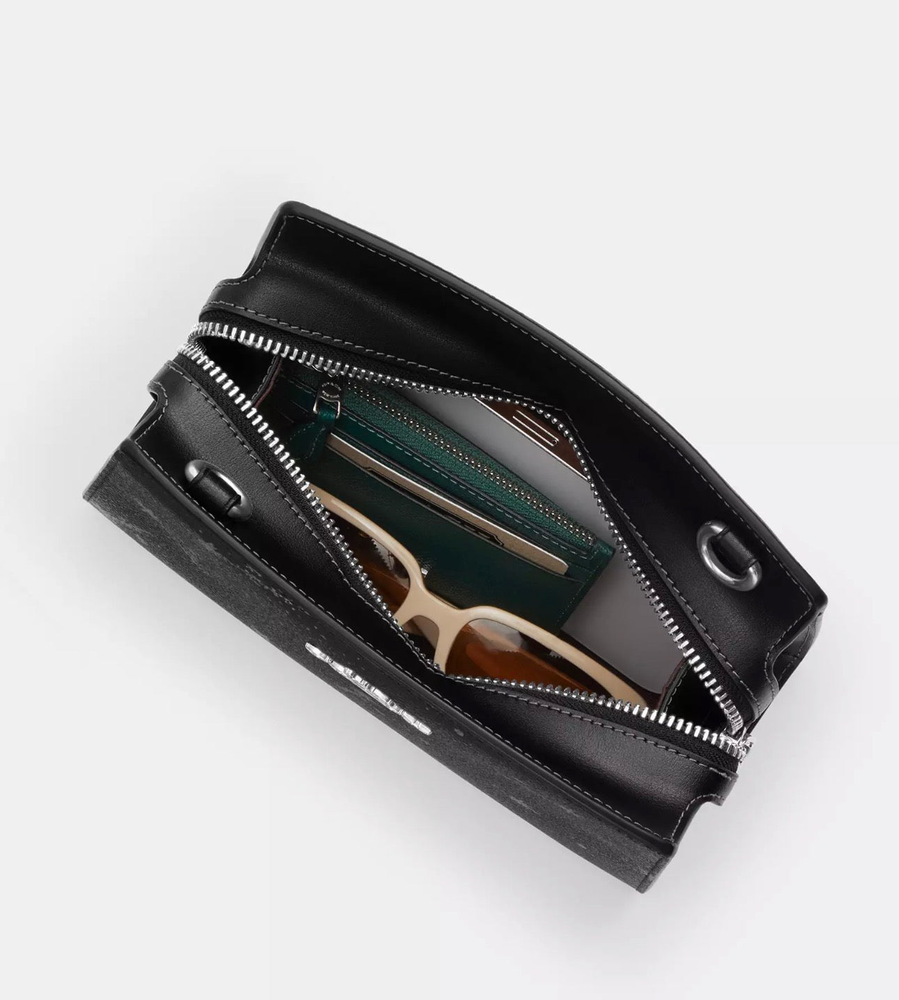 Detachable strap with 24” drop for shoulder or crossbody wear