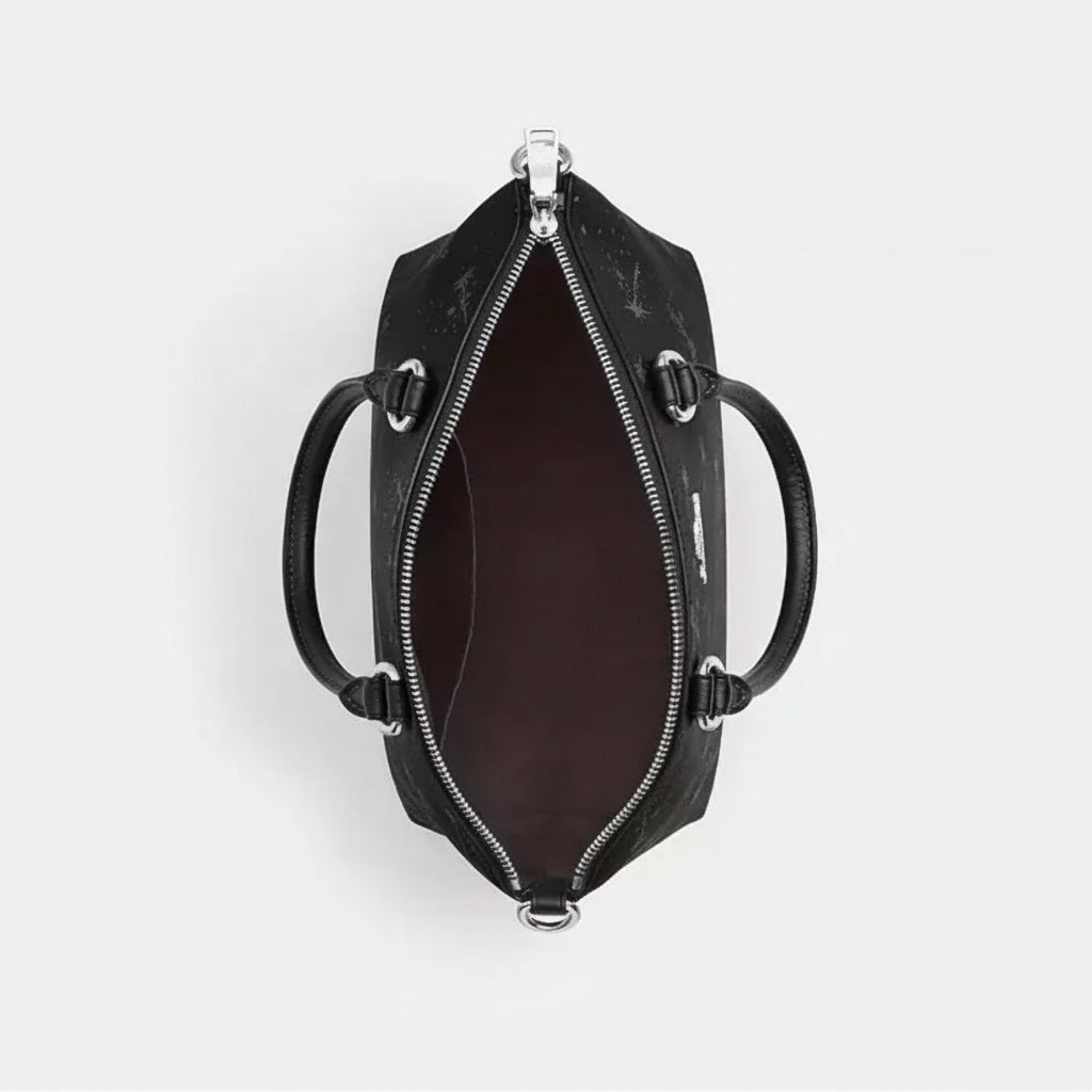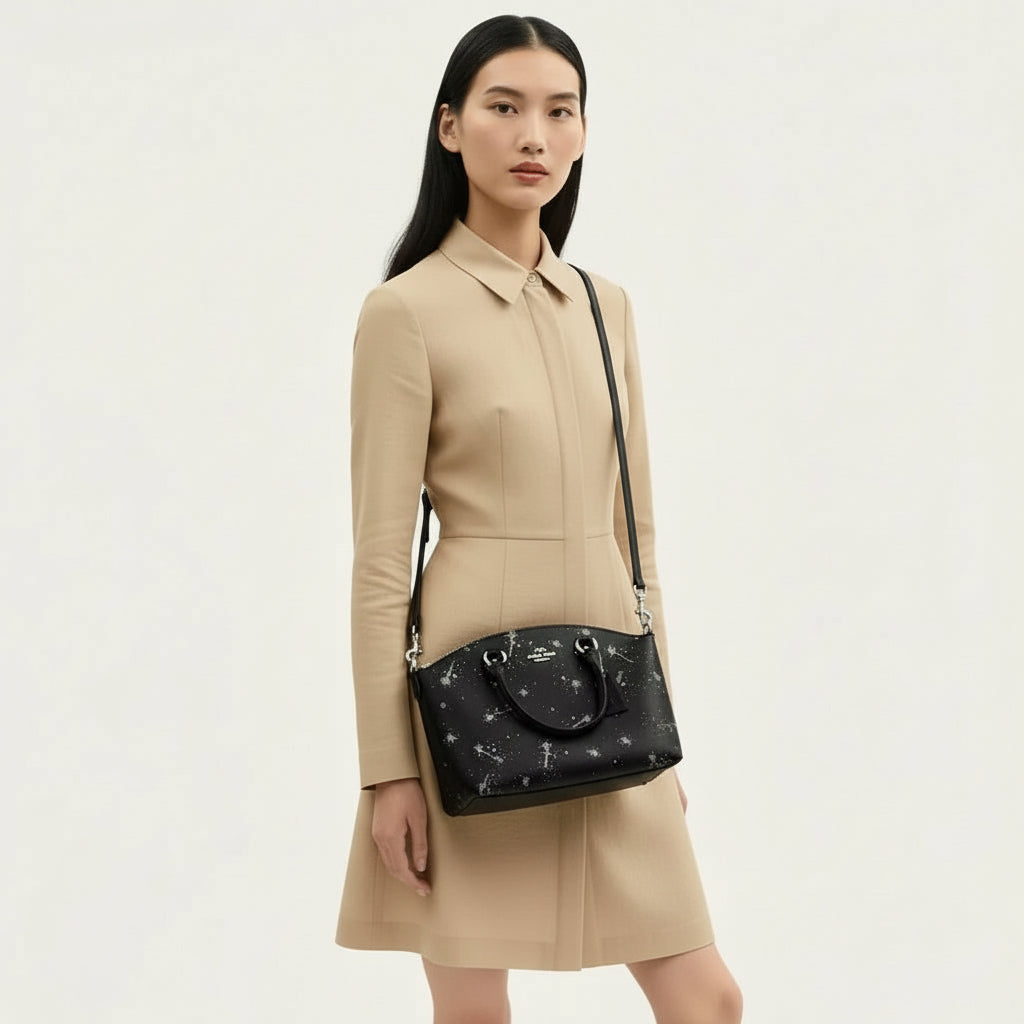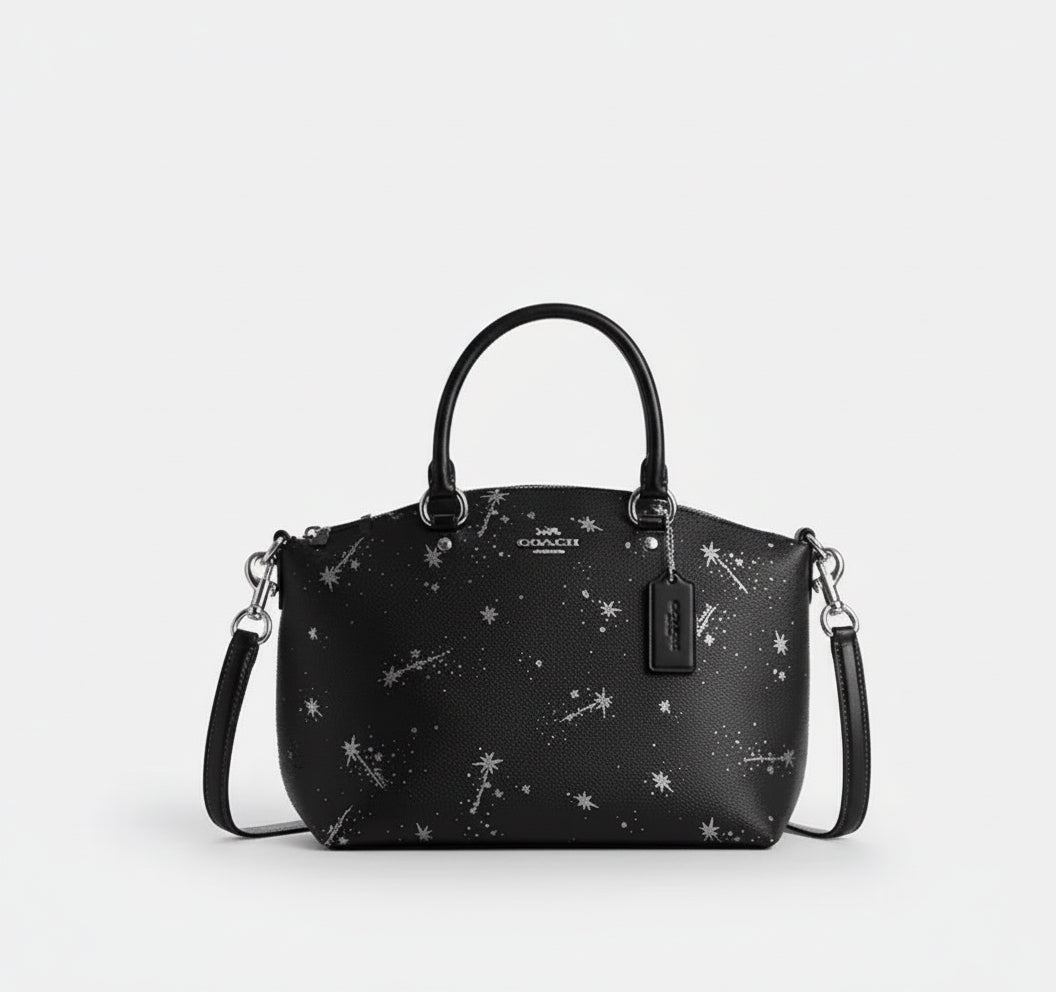 NWT Coach Sadie Satchel Bag In Black With Star Print
