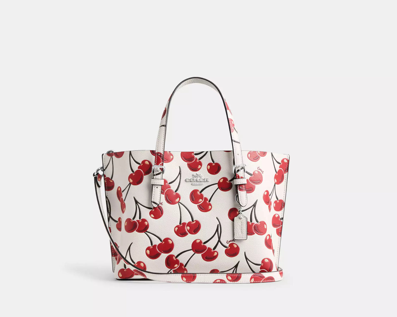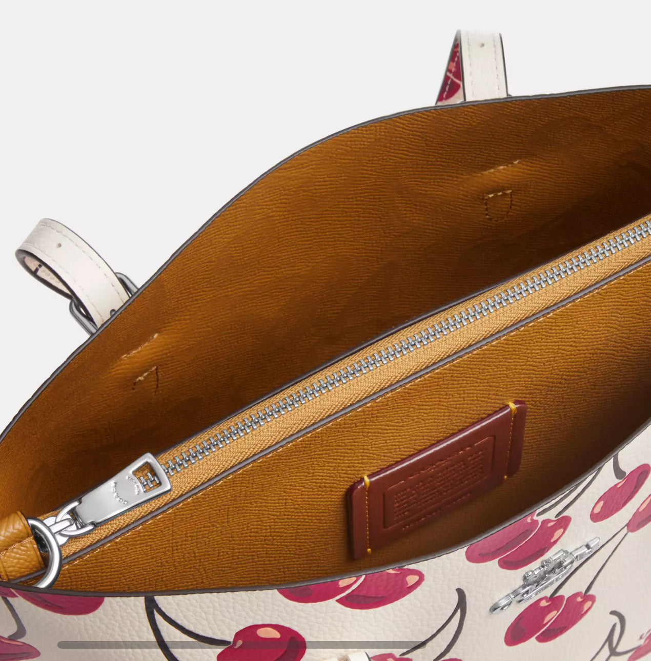 NWT Coach Leather Mollie Tote Bag 25 With Cherry Print