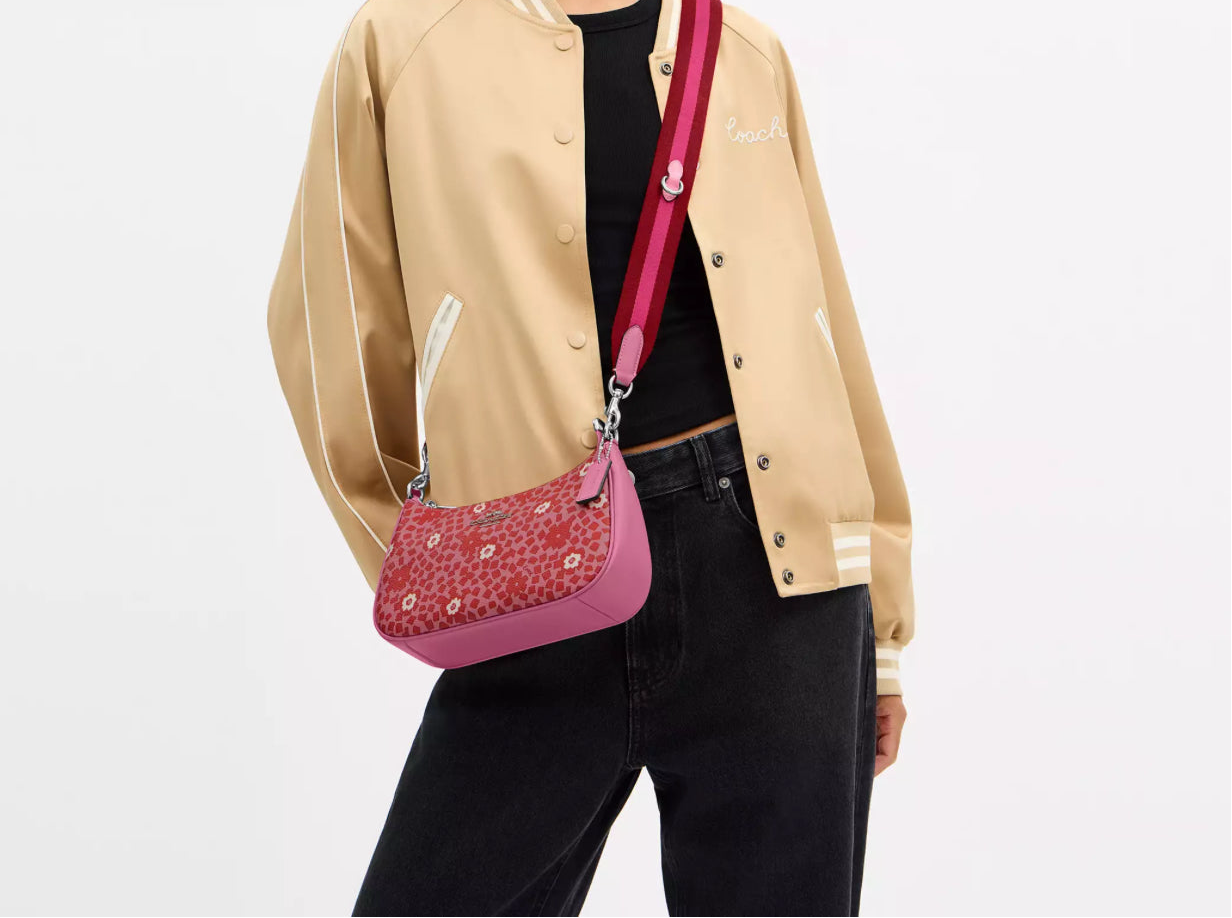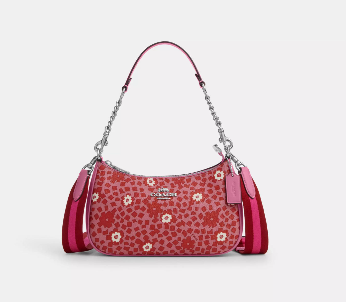 NWT Coach Teri Shoulder Bag With Floral Print In Silver/Pink Multi