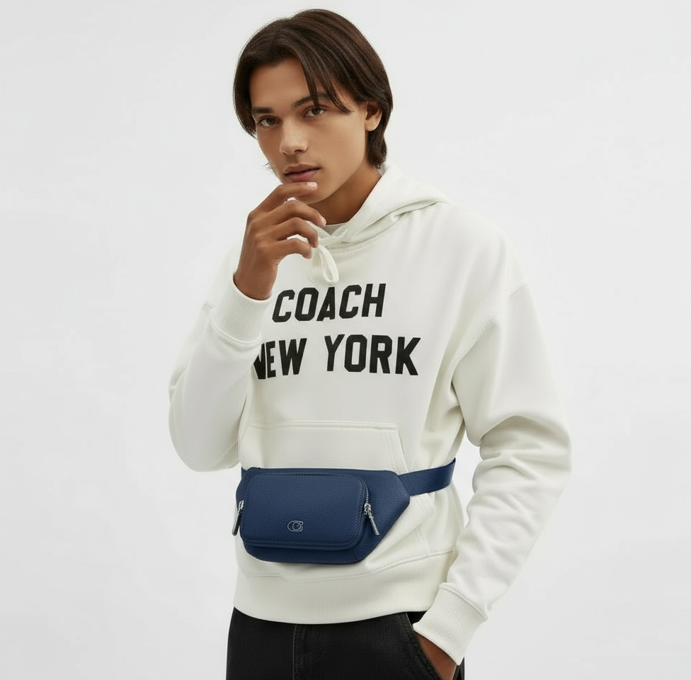 NWT Coach Leather Belt Bag Sling Bag Fanny Pack With Signature Canvas Interior Detail
