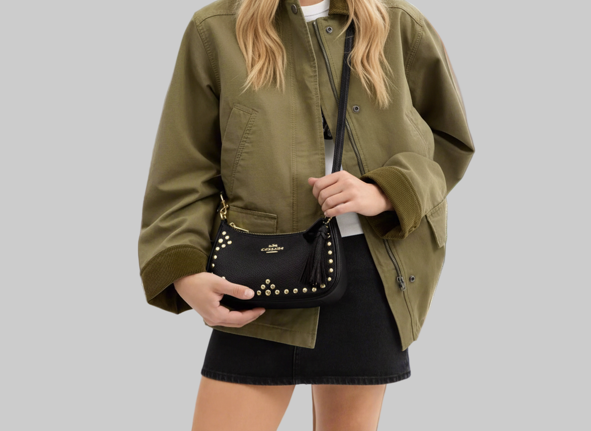 NWT Coach Leather Teri Shoulder Bag With Rivets In Black