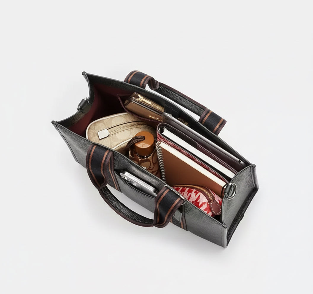 Detachable strap with 22.5" drop for shoulder or crossbody wear