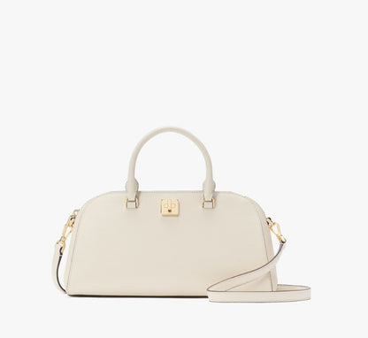 Crafted from refined grain leather with logo lining, this satchel features a turnlock closure, interior slip pocket, and detachable crossbody strap. Fits an iPhone 14 Pro Max and a large continental wallet.